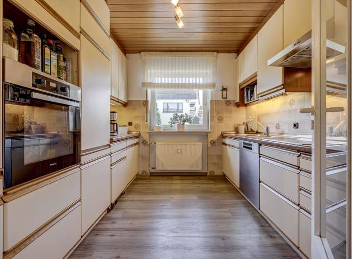 Erbaut im Jahr 1971, steht dieses solide Haus seit über 50 Jahren für Qualität und Beständigkeit. Durch eine kontinuierliche Instandhaltung wurde der Wert der Immobilie stets erhalten und gesteigert. Eine bedeutende Aufwertung erfuhr das Anwesen 1992 durch den Anbau einer Doppelgarage mit einer darauf befindlichen Terrasse für die Wohnung im Obergeschoss.