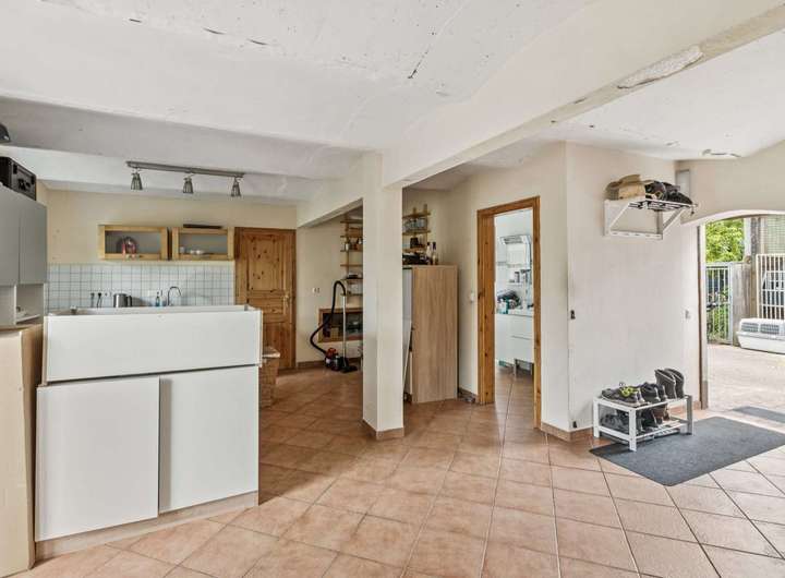 Im Erdgeschoss befinden sich ein helles und großes Wohnzimmer mit offener Küche und Zugang zum Wintergarten, zwei weitere Zimmer sowie ein Badezimmer.