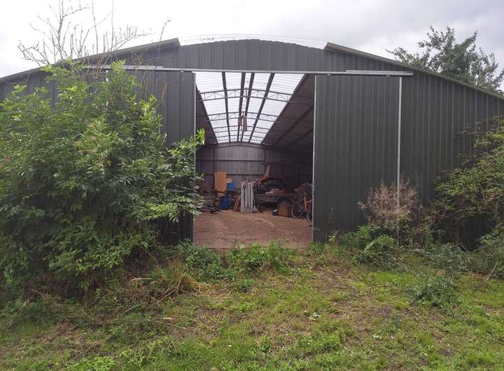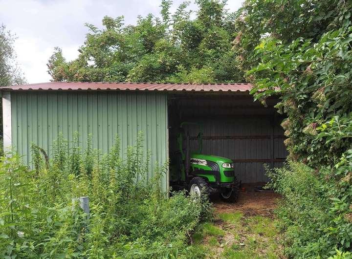 Auf dem großzügigen Grundstück befinden sich mehrere Hallen und Carports.