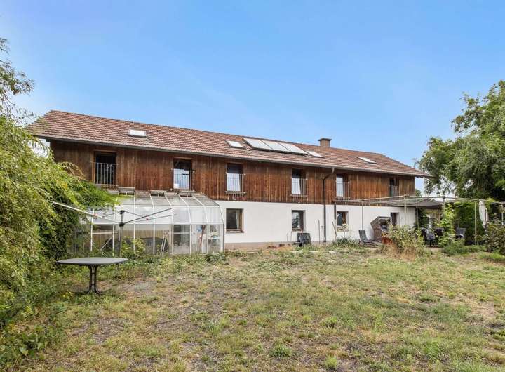 Verkauf Zweifamilienhaus in Form eines modernen Bauerhofes mit Hallen und Carports auf großen Ländereien.