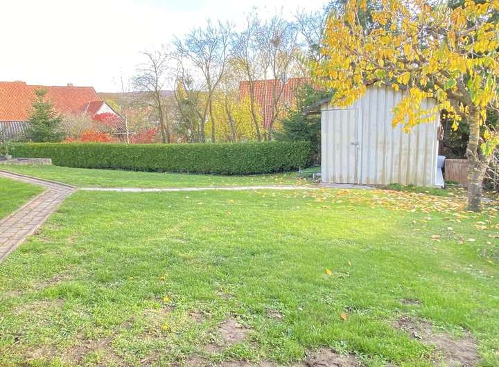 Harbarnsen liegt in einer landschaftlich reizvollen Umgebung mit Feldern, Wäldern und Radwegen direkt vor der Haustür. Besonders angenehm ist, dass eines der angrenzenden Nachbargrundstücke zwar bebaut werden dürfte, derzeit jedoch als großzügiger Garten mit Weinreben, Teich, Obstbäumen und Nutzfläche genutzt wird - so bleibt der Blick ins Grüne erhalten und die Ruhe gewahrt.