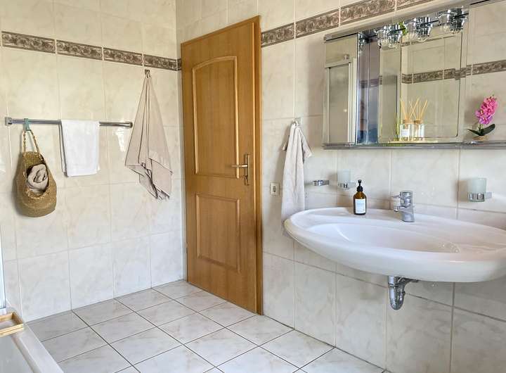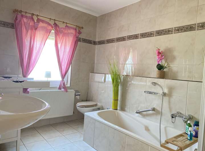 - Zwei voll ausgestattete Badezimmer (EG mit Dusche & Badewanne, OG mit Dusche)
