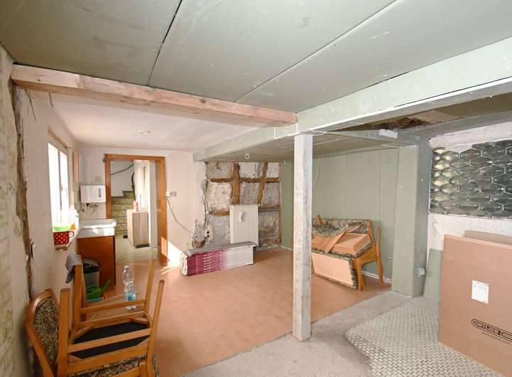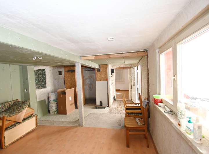 Das Bestandsgebäude erstreckt sich über zwei Etagen mit einer Wohnfläche von ca. 90 m². Diese verteilt sich derzeit auf vier separat begehbare Zimmer.