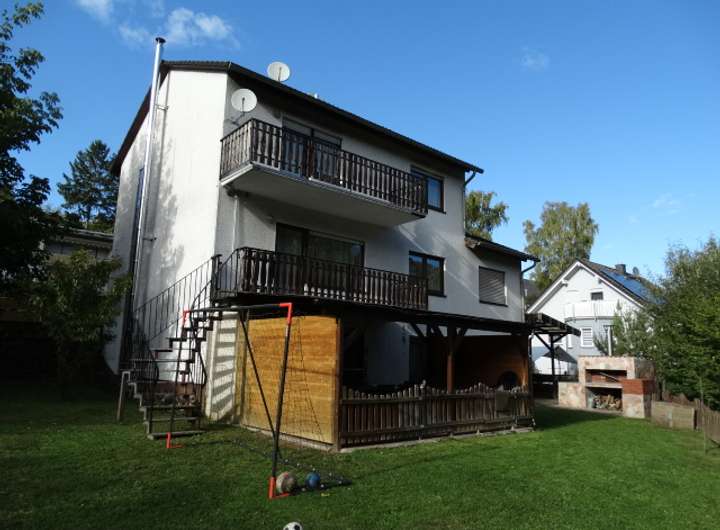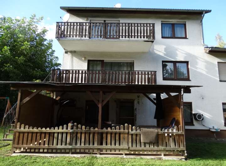Schön gelegenes Einfamilienhaus mit 3 Etagen und ca. 200qm Wohn-und Nutzfläche, ebenes, eingezäuntes Gartengrundstück mit Wintergarten und Steinofen, 1 Garage mit davorliegendem Carport, 2 Balkone, alles in ruhiger Lage am Ortsrand.
