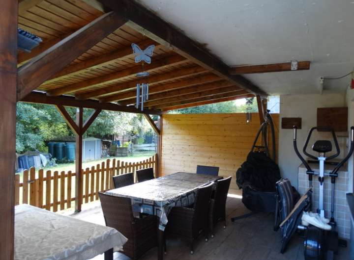 Schöne Ausstattung mit südländischem Ambiente, Doppelverglasung, neue Gas ZH aus 2024, Fliesenböden, Kaminofen, 2 Balkone, Wintergarten, 1 Garage mit Carport davor.