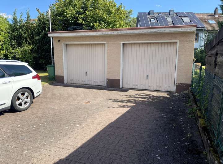 Auf dem Grundstück befinden sich 2 Garagen. Davor ist Platz für zwei weitere PKWs. Ein separater und breiter PKW-Stellplatz befindet sich vor dem Anbau.