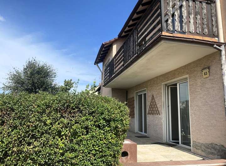 Erdgeschoss: Wohn-Essbereich, 2 Schlafzimmer, Küche, Bad mit Wanne, Dusche und WC, Terrasse.