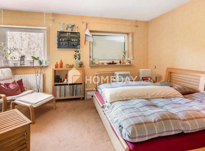 Im ersten Obergeschoss erwartet Sie ein weiteres Wohnzimmer, das auch als Schlafzimmer, Kinderzimmer oder Büro genutzt werden kann. Dieses Zimmer liegt gegenüber dem Schlafzimmer, sodass eine angenehme Distanz und Privatsphäre gewährleistet sind. Beide Räume sowie der Flur im Dachgeschoss sind mit Auslegeware versehen, die für ein behagliches Raumgefühl sorgt. Vom Schlafzimmer aus haben Sie Zugang zu einem Balkon, der zum Entspannen einlädt. Das Badezimmer im Dachgeschoss ist ein wahres Wohlfühlrefugium, komplett gefliest, mit Dusche und Badewanne sowie einem Fenster, das für zusätzliche Belichtung sorgt. Zwei Abstellräume im Dachgeschoss bieten praktischen Stauraum.