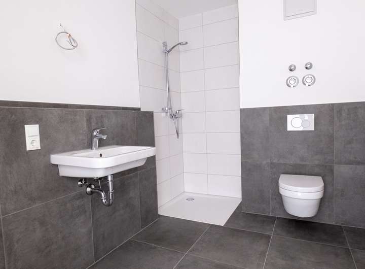 - Bäder und WCs sind mit qualitativ hochwertigen Fliesen verlegt
