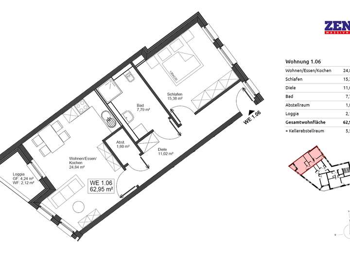 Die Loggia (4,24 m²) bietet zusätzlichen Raum für entspannte Stunden im Freien.
