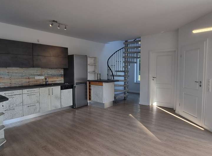 Dieser ist mit einer hochwertigen U-förmigen Einbauküche versehen und bietet viel Platz für einen Esstisch und Wohnzimmermöbel.