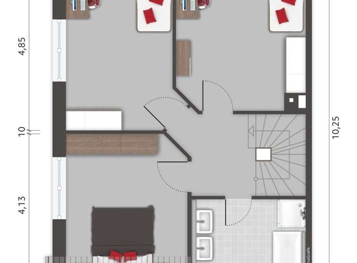 Die gute Aufteilung zieht sich durch die gesamte Immobilie und lässt sich somit auch im ersten und zweiten Obergeschoss wiederfinden. Im ersten Obergeschoss stehen Ihnen drei helle Zimmer und ein Flur zur Verfügung. Hier ist auch das helle Vollbad mit der separaten Dusche und Doppelwaschtisch untergebracht. Im ausgebauten Dachgeschoss befinden sich noch ein weiterer Raum. Dieser Raum wurde nachträglich zu wohnähnlichen Zwecken ausgebaut (weiterhin Nutzfläche).