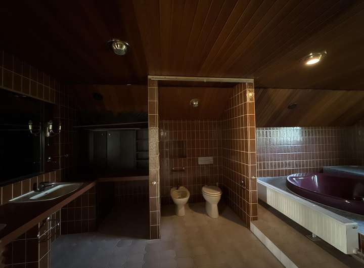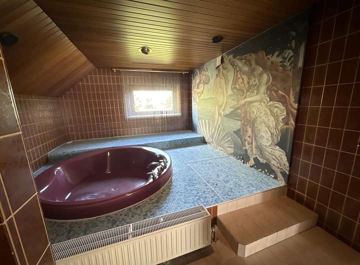 1 großes Tageslichtbad (ca. 30 m² mit Rundbadewanne, Dusche, Bidet, Doppelwaschbecken)