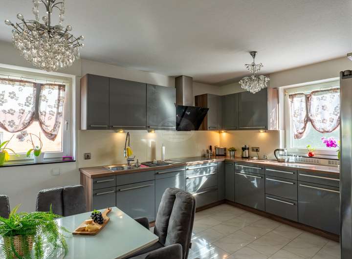 - Küche: Moderne Einbauküche mit hochwertigen Geräten
