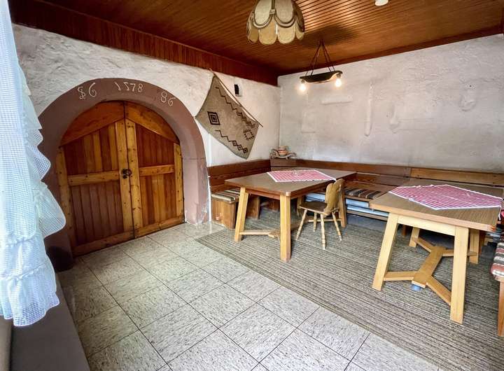 Die Geschichte des historischen Hauses geht weit zurück ins 19. Jahrhundert. Was erzählt uns diese ungewöhnliche Immobilie? Bekannt ist, dass das Anwesen ein familiengeführter Winzerbetrieb war. Mitte der 1960er Jahre beschlossen die Weinbauern auch Wirtsleute zu werden und eröffneten den ersten Gasthof in Leinsweiler. Dieser zog in kürzester Zeit als beliebter Treffpunkt für ein gemütliches Beisammensein und gutes Essen, die Menschen in der Umgebung und natürlich Feriengäste an. Aus diesem Grund wurde der Hof in den 70er Jahren durch mehrere Fremdenzimmer erweitert. Die Hofanlage besteht somit aus zwei Wohneinheiten, die sich im Obergeschoss befinden, dem ehemaligen Wirtshaus mit zwei Gaststuben und Küche im Erdgeschoss. Verschiedene Nutzräumen, die Garage, der Innenhof und ein kleiner Vorgarten vervollständigen das interessante Essemble.