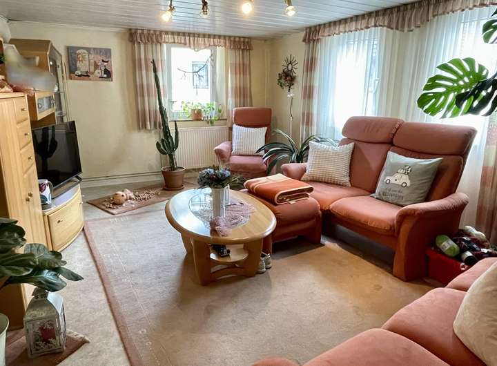 Das Fachwerkhaus vorne verfügt über eine gemütliche 3,5 Zimmerwohnung mit einer geschützen Loggia. Im Rahmen des Um- und Ausbaus in den 1970er Jahren entstand weiterer Wohnraum der, wie erwähnt, früher ein gut gebuchtes Feriendomizil war und im Moment frei steht. Beide Wohnungen haben getrennte Eingänge, können aber auch verbunden genutzt werden.