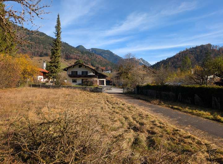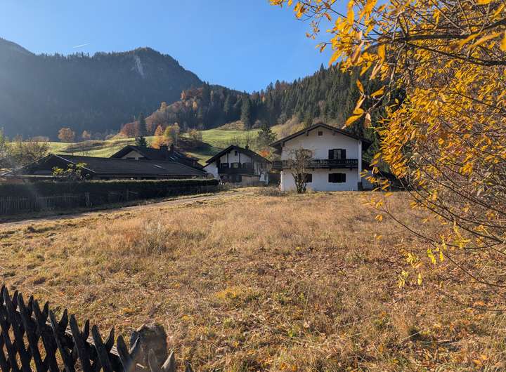 Das ca. 610 m² große, ebene und unbebaute Baugrundstück befindet sich im idyllischen Ortsteil Weißbach an der Alpenstraße (Gemeinde Schneizlreuth im Berchtesgadener Land). Die ruhige, sonnige Lage, der freie Blick auf die Berge Staufen und Ristfeuchthorn sowie die gewachsene, alpenländische Nachbarschaft verleihen dem Grundstück einen besonders attraktiven Charakter.