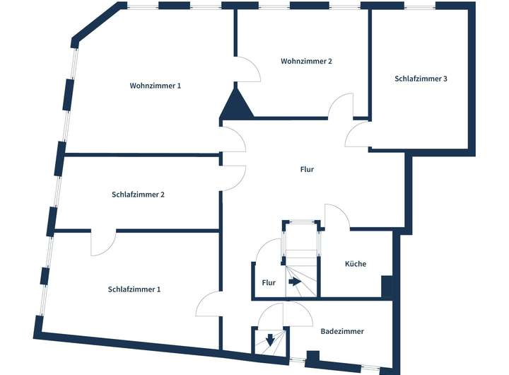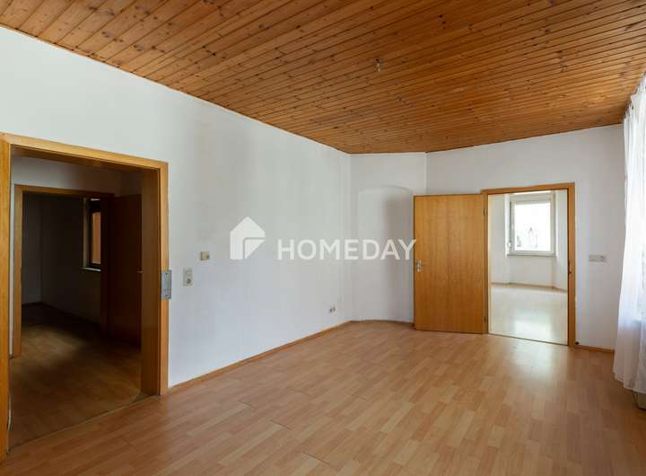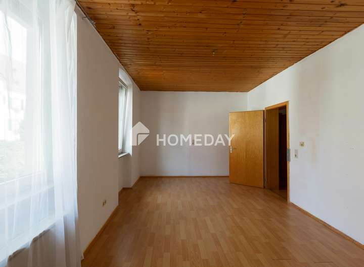 Das erste Obergeschoss dient als Wohnbereich und wird dank großzügiger Fenster mit viel Tageslicht durchflutet. Hier finden die neuen Eigentümer großzügige Wohnflächen mit drei Schlafzimmern, zwei Wohnzimmern, eine Küche und ein voll ausgestattetes Tageslichtbad mit einer Badewanne und zusätzlichen Dusche. Hier haben die neuen Eigentümer die Möglichkeit, die Räume nach ihren individuellen Wünschen zu gestalten und einzurichten. Darüber hinaus gibt es ein ausbaufähiges Dachgeschoss, das zusätzliches Potential für weitere Räumlichkeiten bietet.