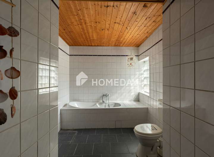 Die Böden im Erdgeschoss sind mit langlebigen Fliesen und im Obergeschoss mit Laminat ausgelegt, was ein angenehmes Wohngefühl vermittelt.