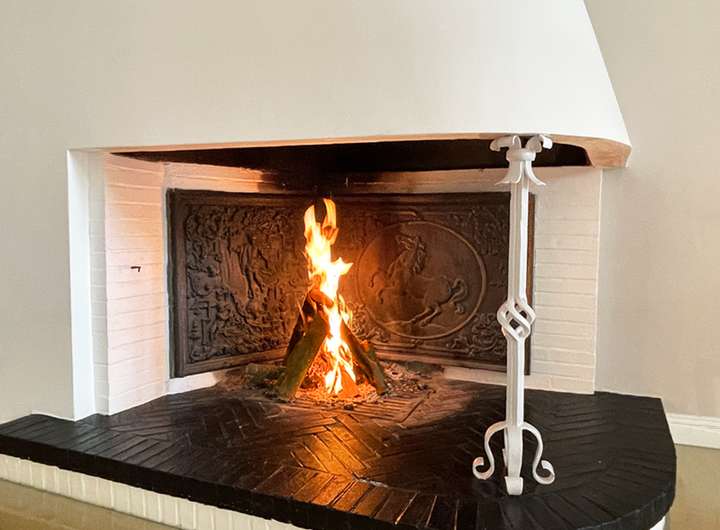 Der elegante Wohnbereich mit Kamin schafft eine warme und einladende Atmosphäre, während die exklusive Einbauküche mit modernster Technik zum Herzstück des Hauses wird.