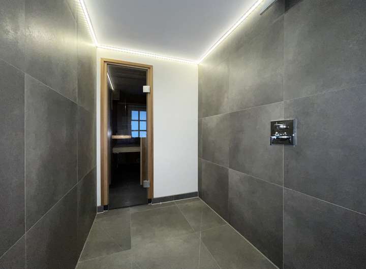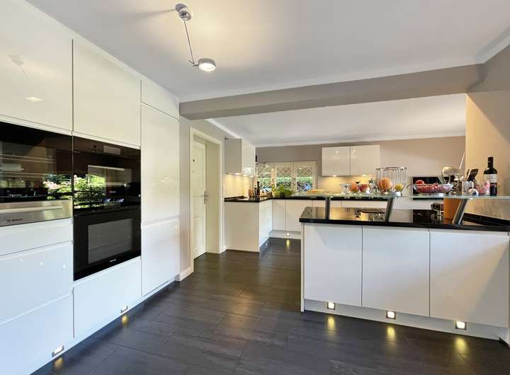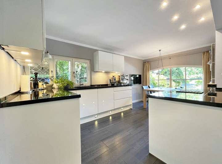 •	Luxuriöse Einbauküche mit hochwertigen Geräten