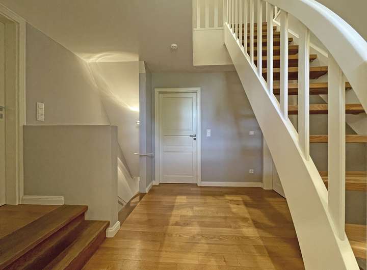 Auf rund 227 m² Wohnfläche erwarten Sie 5 großzügige Zimmer, die durch eine klare Architektur, viel Licht und eine offene Raumgestaltung überzeugen. Jedes Detail ist sorgfältig aufeinander abgestimmt und vereint den Charme traditioneller Bauweise mit zeitgemäßen Wohnstandards.