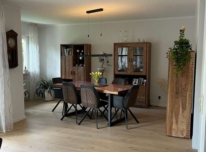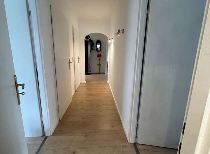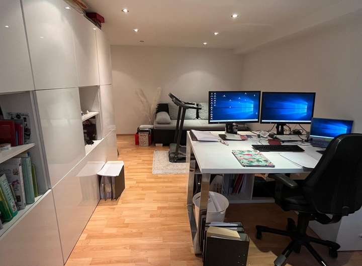 Das Laminat in Küche und Wohnzimmer wurde 2019 erneuert, während das Laminat im Schlafzimmer und im Büro 2023/24 erneuert wurde.