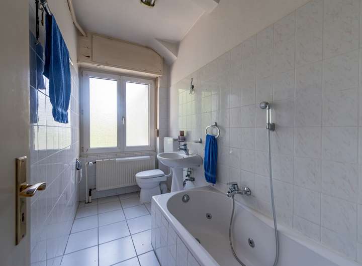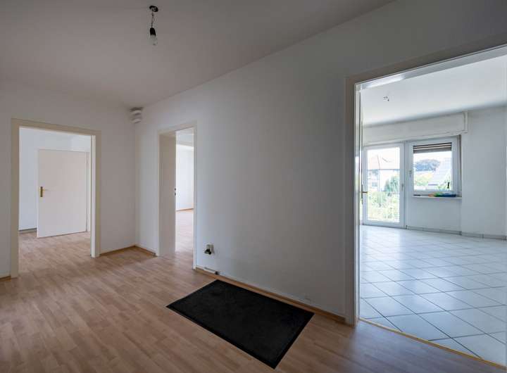 1. Obergeschoss (ca. 90 m²): 3 Zimmer, Küche, Balkon und Tageslicht-Wannenbad. Ebenfalls mit großem Flur und Einbauschränken.