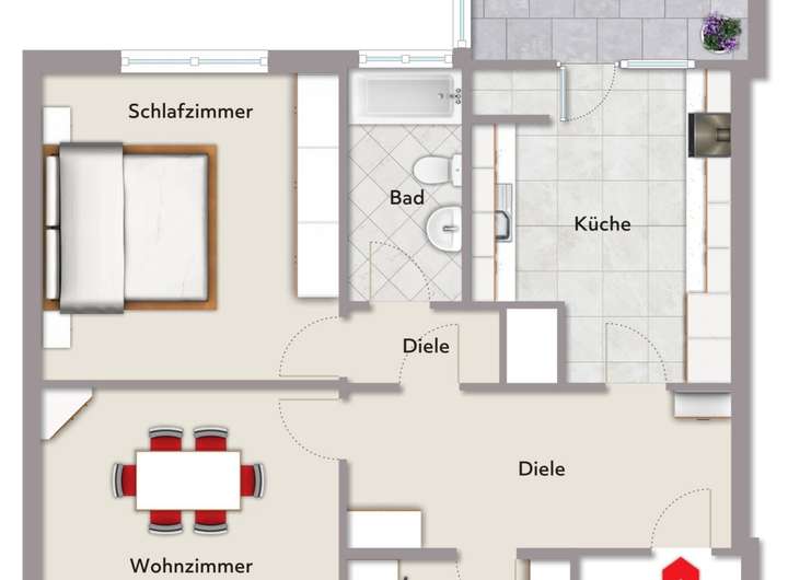 Aktuell ist die Wohnung im Dachgeschoss vermietet: Die Jahresnettomiete (ohne Nebenkosten) beträgt 8.400,00 Euro.