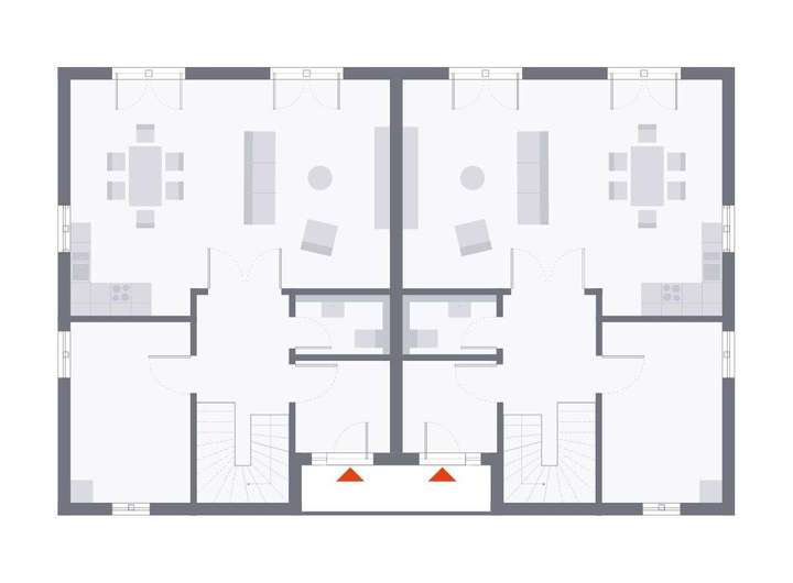 Das ZweiRaum-Konzept hat viele Vorteile: geteilte Kosten, geliebte Familienmitglieder oder gute Freunde Tür an Tür, zusätzliche Einnahmen bei Vermietung. Auch ZweiRaum 12 lässt alle Optionen offen. Die jeweils rund 140 qm großen Haushälften bieten Raum für alle Ansprüche. Linke oder rechte Seite? Identische Grundrisse machen die Entscheidung leicht und in jedem Haus steckt 100 % OKAL. Schon beim Betreten spürt man perfektionierte Funktionalität. Der rückversetzte Eingang mit praktischem Windfang ermöglicht trockenen Zutritt und hält Schmutz aus dem Wohnbereich fern. Und auch die restliche Planung lässt keine Wünsche offen. Qualität, die man spürt.
