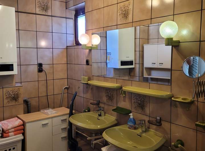 Fliesenfussböden im EG. Aussenrolläden teilweise elektrisch. Zwei separate Toiletten.
