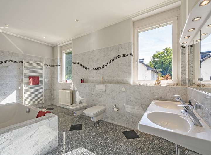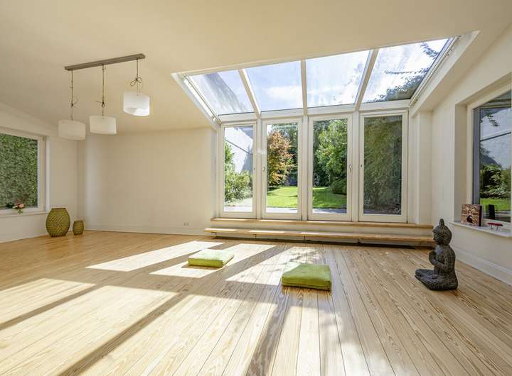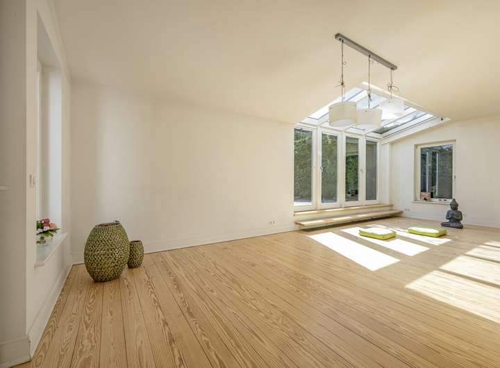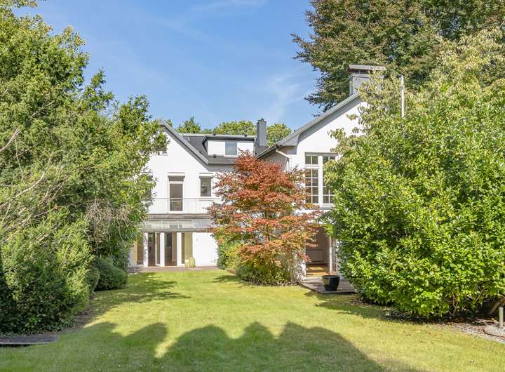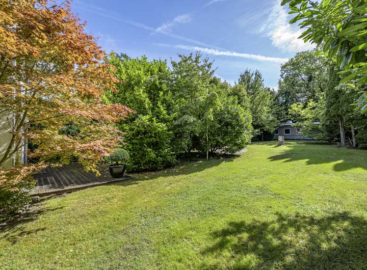 Der individuelle und großzügige Grundriss, die lichtdurchfluteten Räume und der parkähnliche Garten komponieren ein Zuhause, das viel Potenzial für einen individuellen Wohnkomfort bietet.