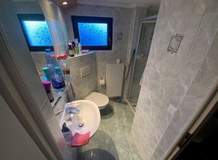 Im Kellergeschoss befindet sich ein großzügiges Bad mit Dusche und Badewanne (ca. 10,18 m²)