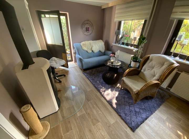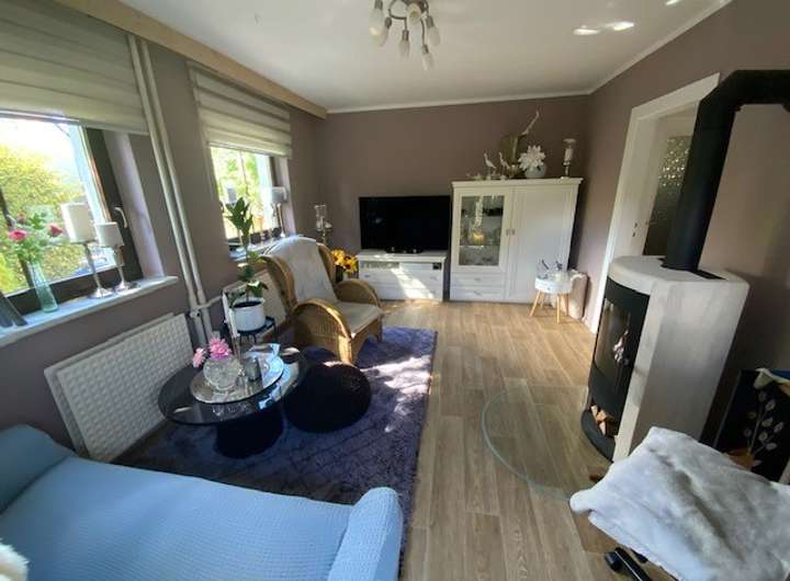 das Wohnzimmer (ca. 17 m²) mit gemütlichem Kaminofen lädt zum Entspannen ein,