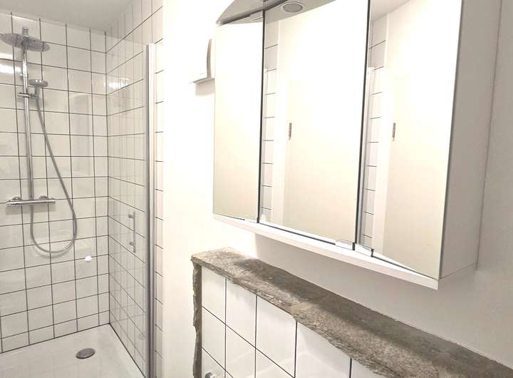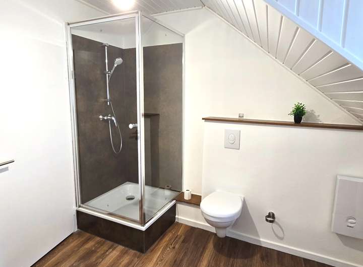 Die Wohnung im Erdgeschoss (ca. 28 m²) besteht aus einem Bad mit Dusche, einem Zimmer und