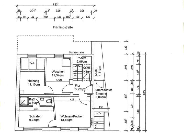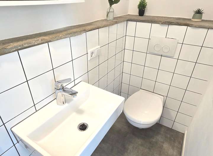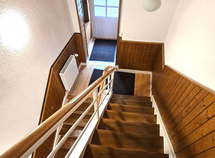 Der gemeinsame Waschraum und der Heizungsraum befinden sich im Erdgeschoss.