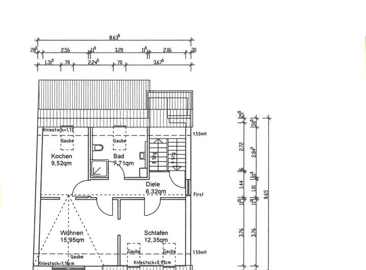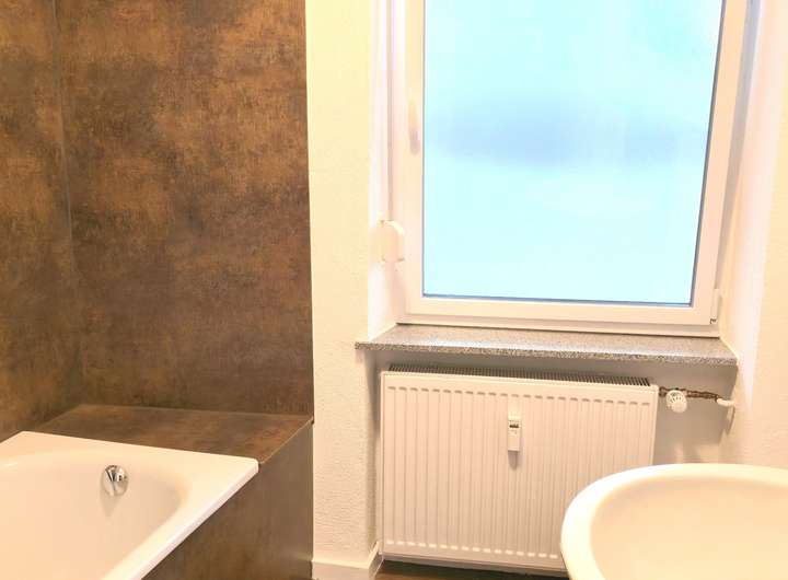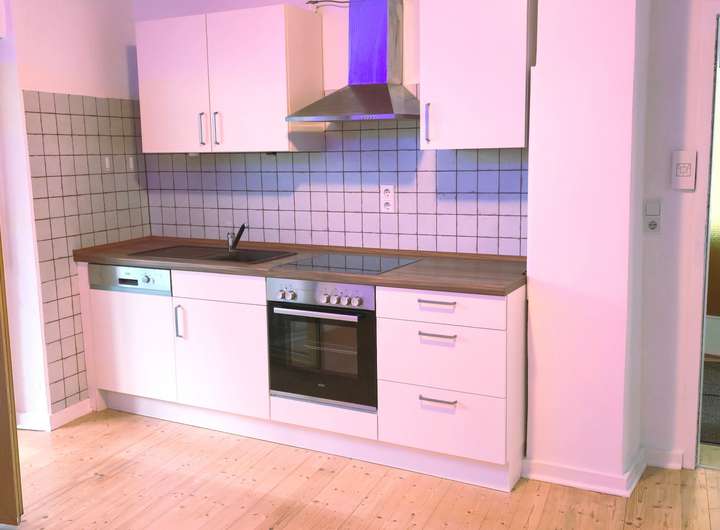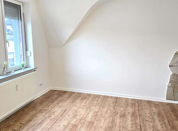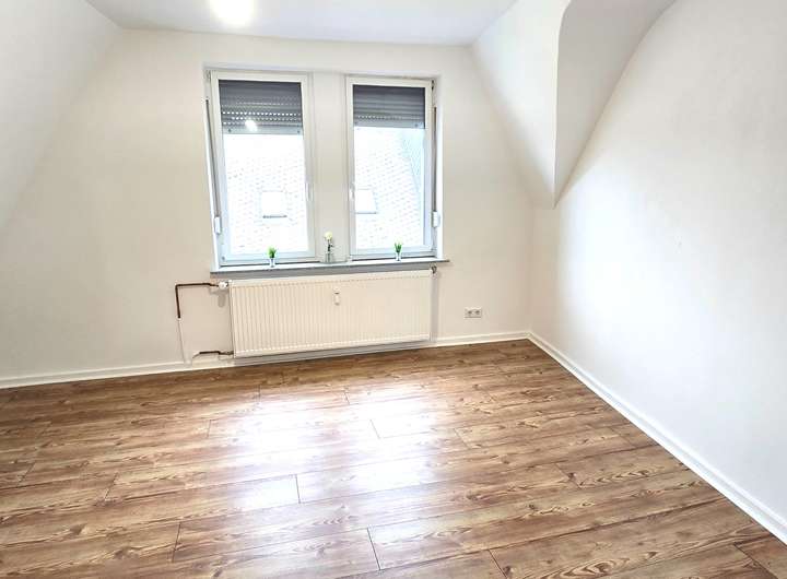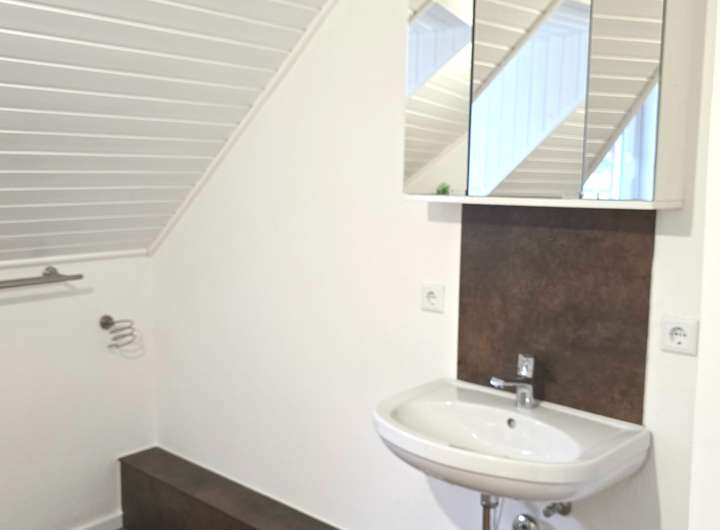 Die Wohnung im Dachgeschoss ( ca. 49 m²) hat ein Tageslichtbad mit Dusche, eine Küche und zwei Zimmer.