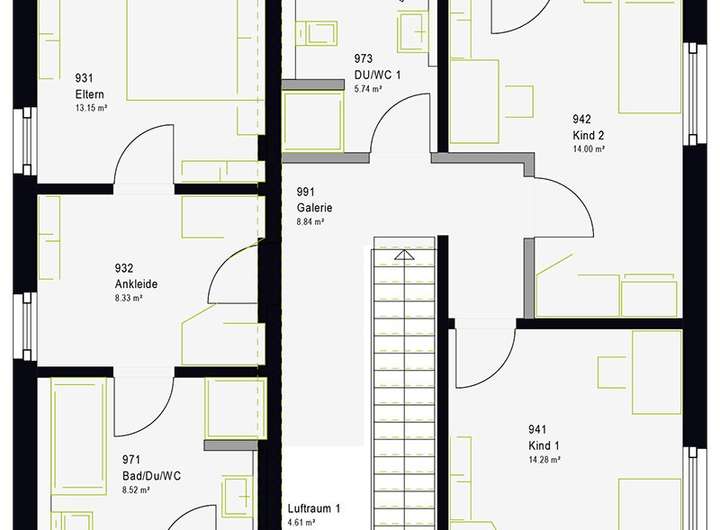 - massa Freiraum = Wohnraumhöhe 2,75 m im EG und DG serienmäßig