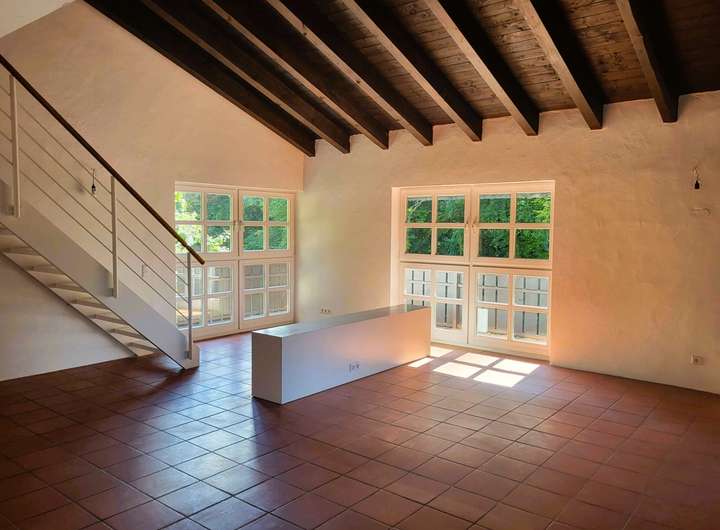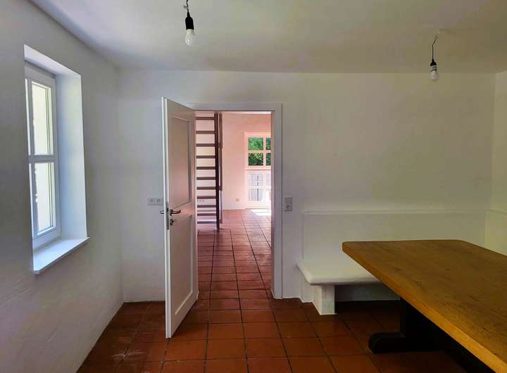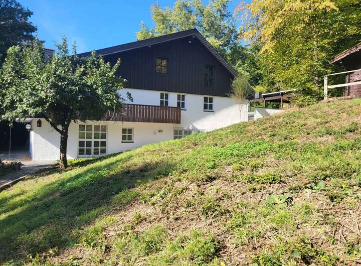 Das Wohnhaus überzeugt durch eine harmonische Verbindung von rustikalem Charme und modernem Komfort. Die großzügigen Wohnräume sind lichtdurchflutet und bieten Platz für individuelle Gestaltungsmöglichkeiten. Im Untergeschoss (ebenerdig aufgrund Hanglage) befinden sich zwei separate Appartements, die perfekt für Gäste geeignet sind. Das Anwesen verfügt über mehrere Terrassen sowie einer Sauna und einen Pool. Des Weiteren befindet sich auf dem Grundstück ein eigener See, der zum Angeln und zur Naturbeobachtung einlädt. Der großzügige Garten bietet ausreichend Raum für Freizeitaktivitäten oder die Schaffung einer grünen Oase.