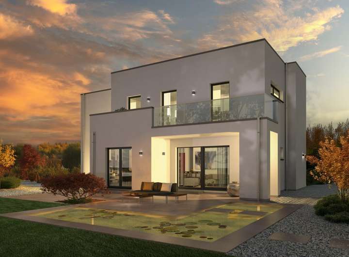 Das Black Label 17 vereint kleinere und größere rechteckige Elemente zu einem harmonischen Gesamtbild, das durch eine beeindruckende Fassade, markante Vorsprünge und Rückversätze sowie zahlreiche wohnliche Mehrwerte besticht. Besonders hervorzuheben ist der großzügige Balkon im Obergeschoss auf der Rückseite des Einfamilienhauses, während darunter ein überdachter Terrassenbereich entsteht, der sich perfekt an den Erker anschmiegt und dem Essbereich im Inneren eine besondere Gestaltung verleiht. Apropos Innenraum: Künftige Eigenheimbesitzer dürfen sich auf über 200 m² Wohnfläche freuen, die sich auf zwei Etagen verteilen. Im Erdgeschoss finden sich neben dem geräumigen Wohn-Ess-Koch-Bereich, der durch eine zentral gelegene Speisekammer vom Flur und Dielenbereich abgetrennt wird, ein Hauswirtschaftsraum sowie ein Gäste-WC. Vom großzügigen Flur gelangt man ins Obergeschoss, wo zwei Kinderzimmer mit eigenem Balkon und separatem Bad sowie das große Elternschlafzimmer mit Ankleide, Badezimmer und einem weiteren Balkon untergebracht sind. Die Galerie in der ersten Etage verbindet die Räume und bietet ausreichend Platz für eine kleine Bibliothek oder eine gemütliche Relax-Ecke.
