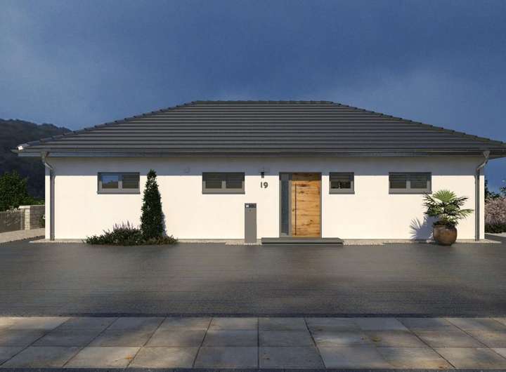 Dieser Bungalow ist in einer Ausführung mit Flach- oder Walmdach erhältlich.