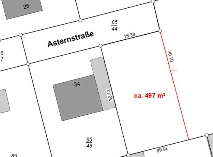 Die Fläche von ca. 497 m² ist für eine Bebauung mit einem Einfamilienhaus vorgesehen und wird noch vermessen.