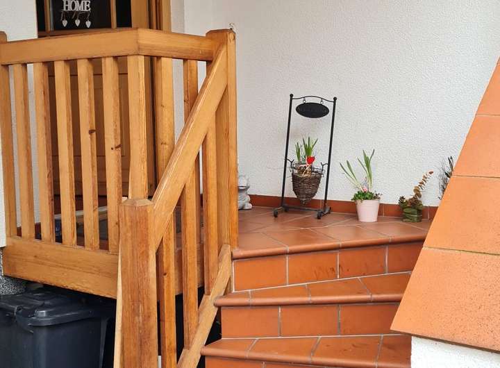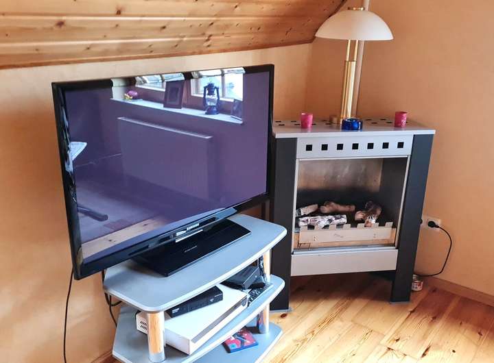 Beim Betreten des Hauses empfängt Sie eine freundliche Diele mit Gäste-WC. Herzstück des Erdgeschosses ist der großzügige Essbereich mit Übergang zur offenen Einbauküche – ideal für gemeinsames Kochen und gesellige Stunden. Der angrenzende Wohnbereich mit Kaminofen sorgt für eine behagliche Atmosphäre. Über wenige Stufen gelangen Sie auf die kleine, geschützte Innenterrasse – ein wunderbarer Platz zum Entspannen.