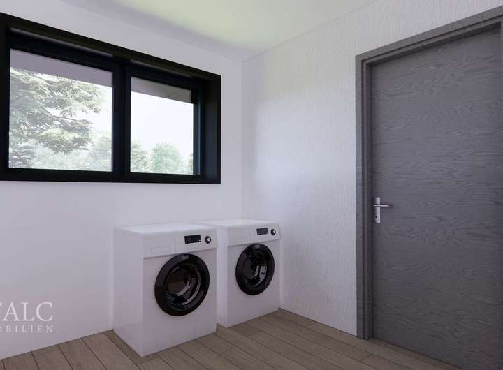 Hochwertige Materialien wie massive Buchenstufen, weiße Innentüren, anthrazitfarbene Fenster und fein abgestimmte Fliesen in Bad und WC schaffen ein stilvolles und modernes Ambiente. Auch an Komfort wurde gedacht: elektrische Rollläden, Netzwerkanschlüsse (CAT 7) sowie die Vorbereitung für eine E-Ladestation in der Garage gehören selbstverständlich dazu.