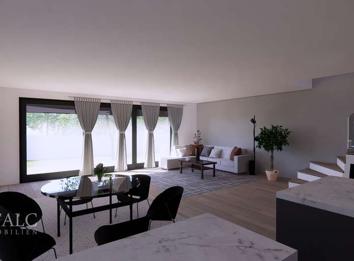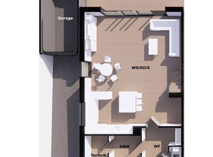 Im Erdgeschoss erwartet Sie ein offener Wohn- und Essbereich mit Zugang zur Terrasse und zum Garten – der ideale Treffpunkt für gemeinsame Familienzeit. Die moderne Luft-Wasser-Wärmepumpe, Fußbodenheizung in allen Wohnräumen und eine Photovoltaikanlage pro Haus gewährleisten umweltfreundliches und zukunftssicheres Wohnen.
