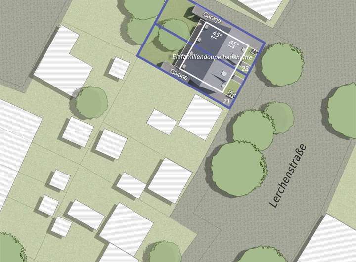 Die Lerchenstraße verbindet somit ruhiges Wohnen im Grünen mit zentraler Erreichbarkeit – der ideale Standort für moderne Doppelhaushälften, die Komfort, Familienfreundlichkeit und Nachhaltigkeit vereinen.
