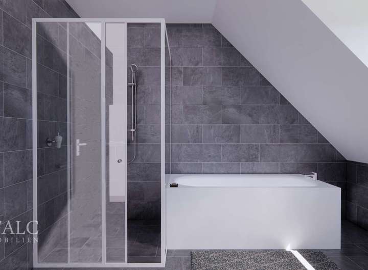 -Bad (DG): Wanne, bodengleiche Dusche, Waschtisch, WC