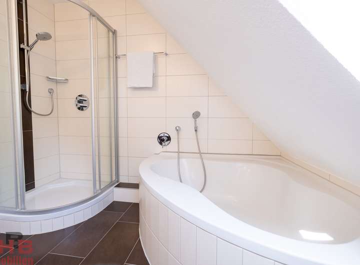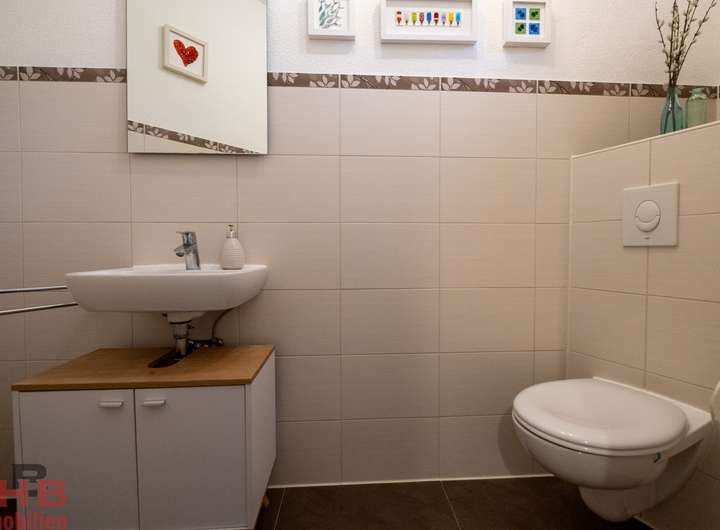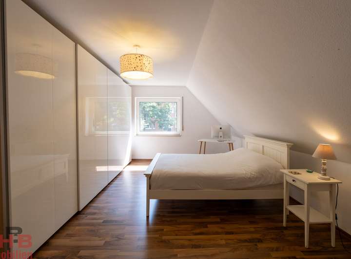 Exemplarisch möchten wir auf folgende Ausstattungsdetails hinweisen: -Ca. 54 m² Wohn-/Esszimmer -3 Schlafzimmer (ca. 12 m²/ 16 m² / 25 m²) -Wohnküche mit EBK (Simatic) -Fußbodenheizung im gesamten Haus -saniertes Tageslicht Badezimmer mit Wanne & Dusche (2010) -saniertes Gäste WC (2010) -Rollläden (z.T. m. Insektenschutz) im gesamten Haus -Hauswirtschaftsraum mit Zugang zur Küche & zum Garten -Gas Brennwerttherme mit Warmwasseraufbereitung (NEU 2023) -Massive Garage direkt am Haus -Separater PKW Stellplatz auf dem Gemeinschaftsparkplatz -Gartenhaus und Grundwasserbrunnen