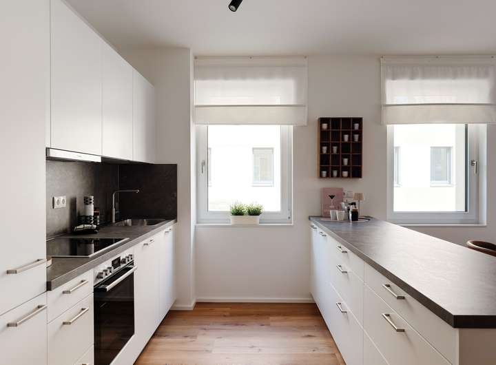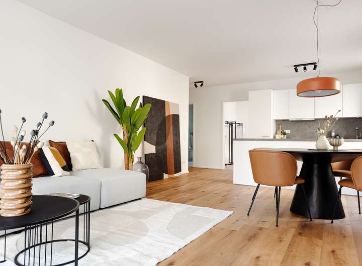 Die Neubau-Erstbezug-Wohnungen schaffen Raum für ein wertvolles und nachhaltiges Zuhause mit viel Wohn- und Lebensqualität. Gut durchdachte Räume ermöglichen große Flexibilität zur individuellen Ausgestaltung. Großformatige Fenster bieten Ausblicke in aufwendig gestaltet Grünanlagen. In der Ausstattung überzeugen die Wohnungen durch eine sorgfältig kombinierte Auswahl hochwertiger Materialien.