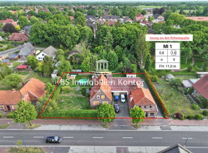 Bauunternehmer und Investoren aufgepasst. Dieses besondere Angebot bietet Ihnen vielseitige Nutzungsmöglichkeiten! Das ca. 1.435qm große Grundstück liegt in einer zentralen Ortskernlage von Hesel. Sämtliche Einkaufsmöglichkeiten des täglichen Bedarfs, Ärzte, Schulen, Kindergärten und Banken sind bequem fußläufig erreichbar. Die B72 sowie die Autobahnen A28 und A31 sind in wenigen Minuten erreichbar und sorgen für eine optimale regionale und überregionale Anbindung. Hesel gilt als beliebter Wohnort mit wachsender Nachfrage – ideal für Investitionen in Wohnraum. Das Grundstück ist derzeit noch mit einem Einfamilienhaus (ca. 150qm groß) und einem Wohn-/Geschäftshaus (ca. 256qm groß) bebaut. Der Bebauungsplan weist folgende Kennzahlen auf: GRZ: 0,8, GFZ 1,6, Anzahl der Vollgeschosse 4, Mischgebiet, Firsthöhe 11m. Aufgrund der Größe des „Bauteppichs“ lassen sich gleich mehrere Bauvorhaben umsetzen (Mehrparteienhaus, Wohn-/Geschäftshaus etc.) Gerne übermitteln wir Ihnen auf Anfrage den Bebauungsplan und weitere relevante Unterlagen.